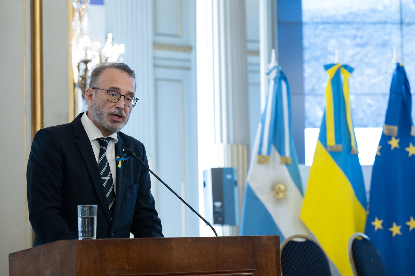 El Embajador Klymenko señaló que se trata de una fecha significativa para su país y repasó el impacto humanitario del conflicto, mencionando datos difundidos por organismos internacionales respecto de víctimas, desplazamientos y situaciones que afectan a la población civil y a prisioneros de guerra.