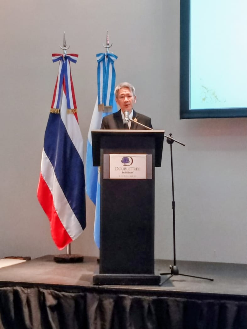 Durante su mensaje, el diplomático subrayó el papel de la Argentina como tercer socio comercial de Tailandia en la región, así como el creciente interés de los viajeros argentinos por el sudeste asiático. “Este año han visitado Tailandia 24.000 argentinos y esperamos que ese número siga creciendo”, señaló.