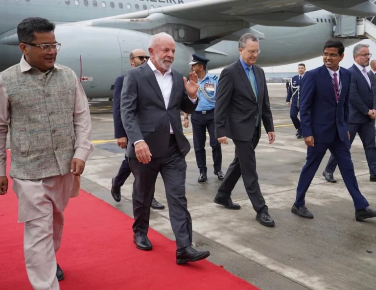 El presidente de Brasil, Luiz Inácio Lula da Silva, aterrizó este miércoles en Nueva Delhi, capital de India para dar inicio a una gira oficial que lo llevará también Corea del Sur. El mandatario fue recibido con honores por el secretario de Estado Prabitha Margherita, el mandatario brasileño se dispone a cumplir una agenda de alto nivel que incluye reuniones con el primer ministro Narendra Modi y su participación en la Cumbre India Impacto IA.