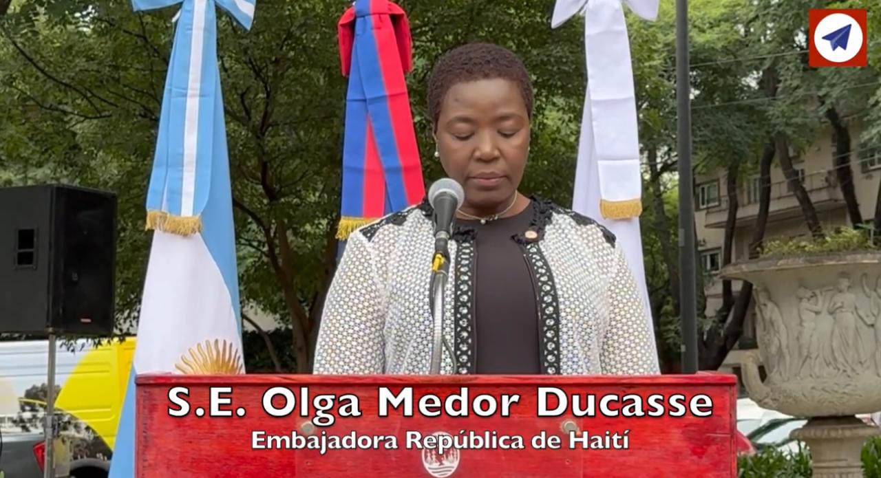La jornada estuvo encabezada por Su Excelencia la Embajadora de Haití en Argentina, Olga Medor Ducasse, quien brindó un discurso en el que destacó el valor histórico y simbólico de la cooperación entre los pueblos. En su intervención, subrayó el papel fundamental de Haití como promotor de la libertad en el continente, recordando que fue el primer país en apoyar activamente a Bolívar, brindándole recursos, refugio y respaldo político en un momento decisivo.