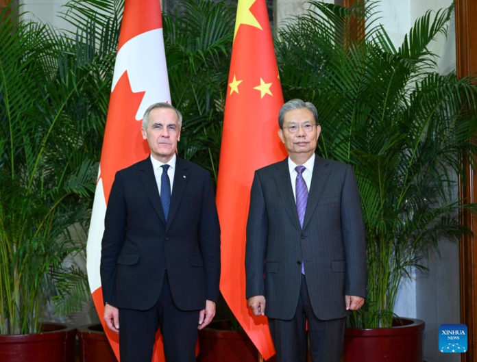 Zhao Leji, presidente del Comité Permanente de la Asamblea Popular Nacional (APN) de China, se reunió hoy jueves en Beijing con el primer ministro canadiense, Mark Carney.